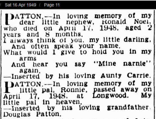 * The Patton's were connected with the Bank of Glasgow which invested heavily in Australia but went broke and so did a lot of the Pattons who must have invested in the bank.