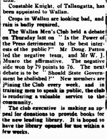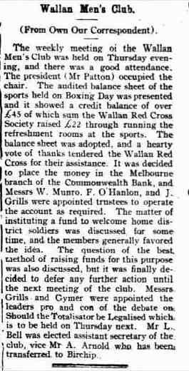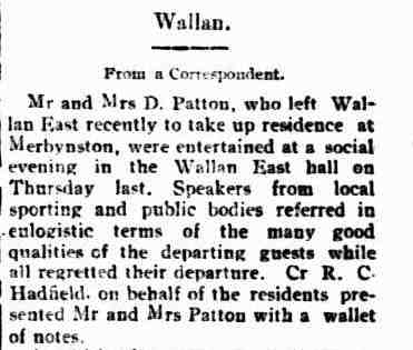 James was known as Jim, and as secretary of the Wandong Hall was replaced in 1956 after twenty years of service by a Mrs Walsh.