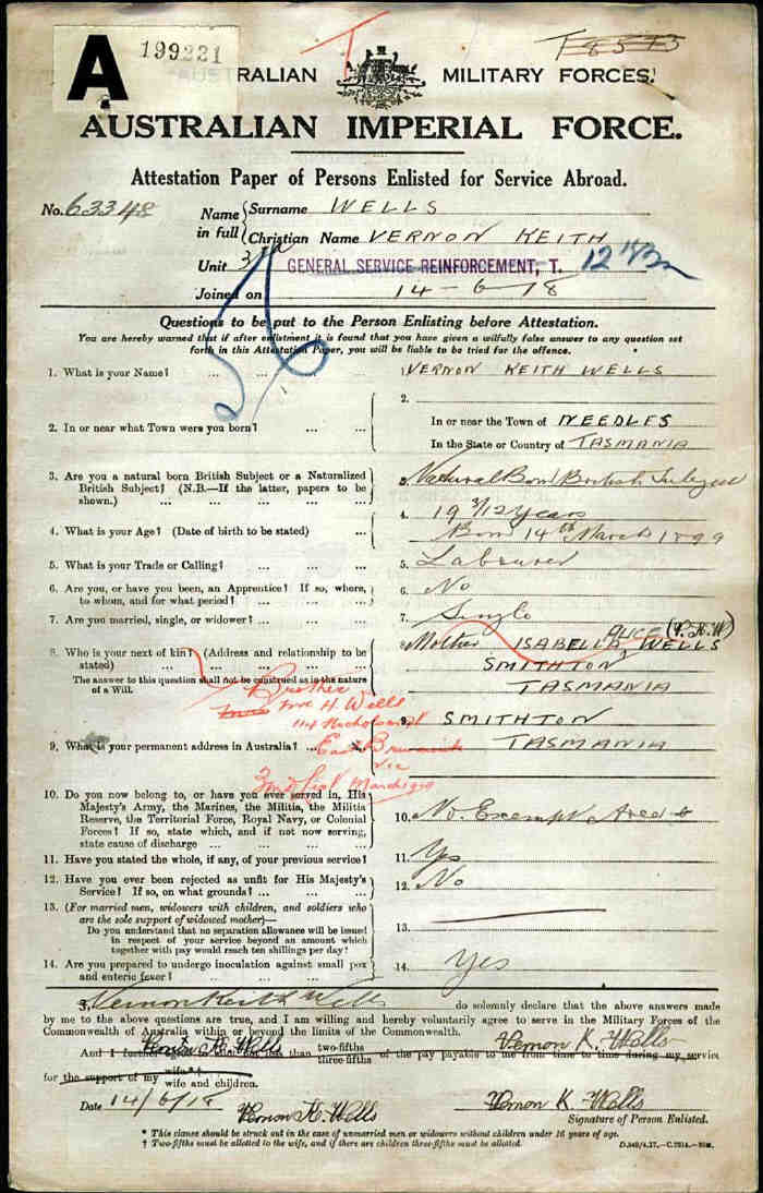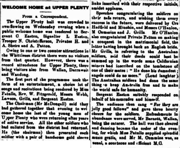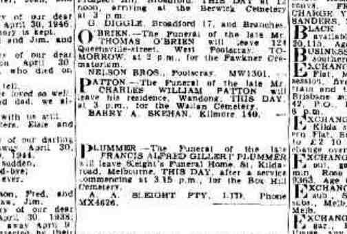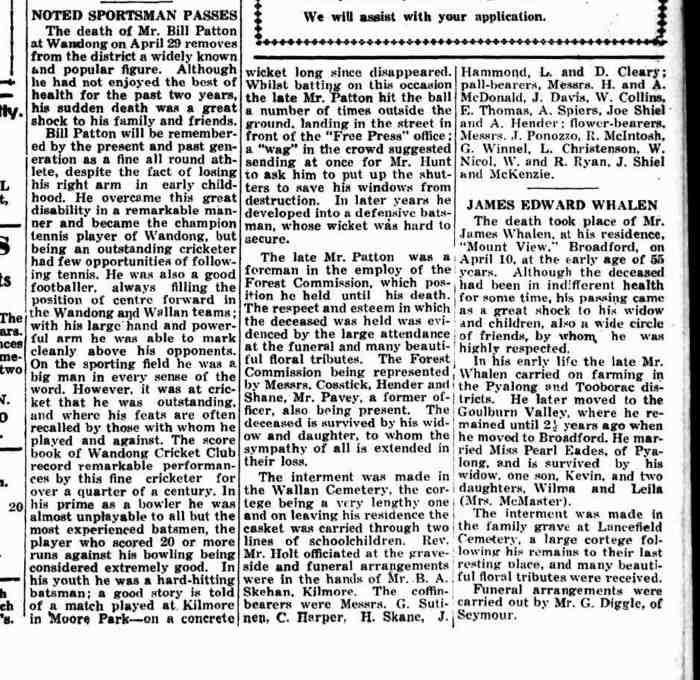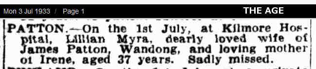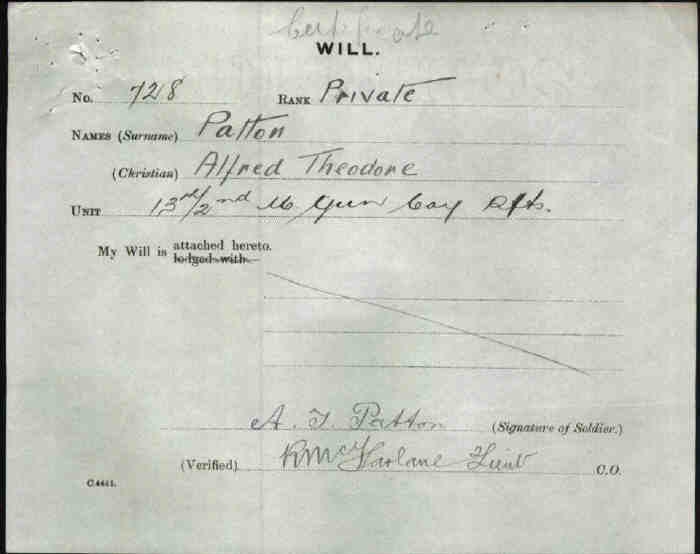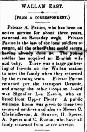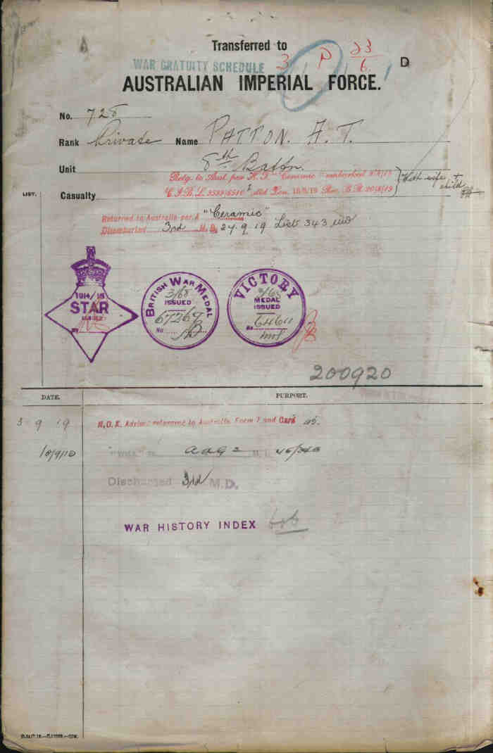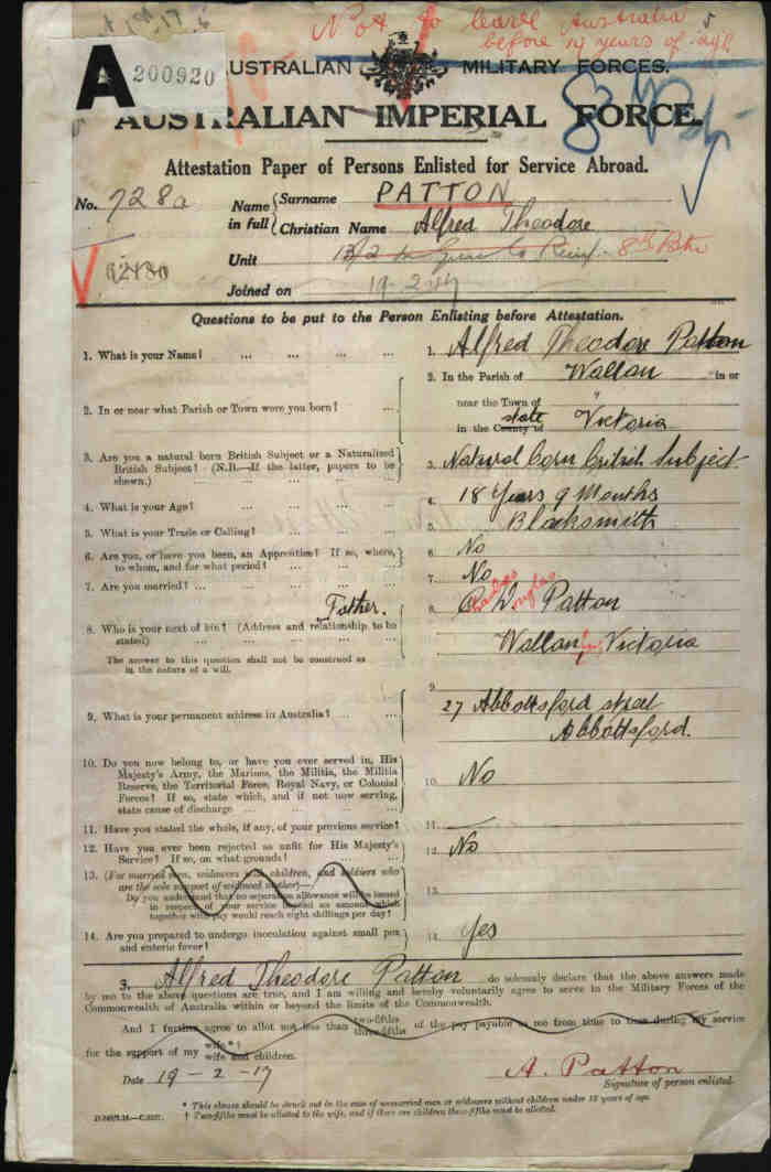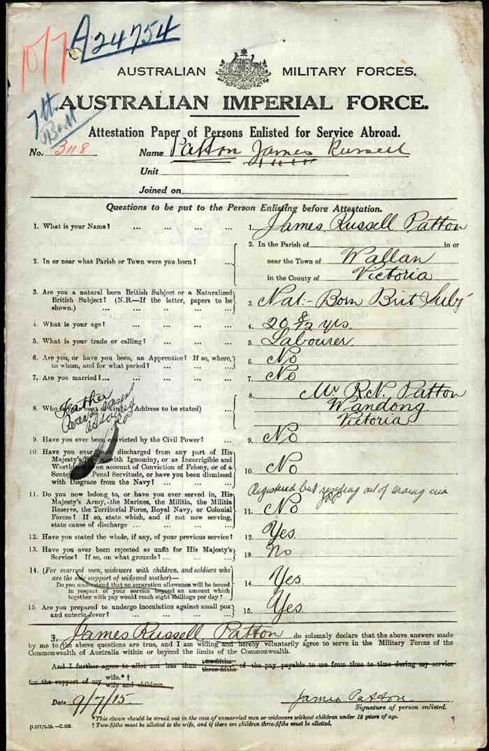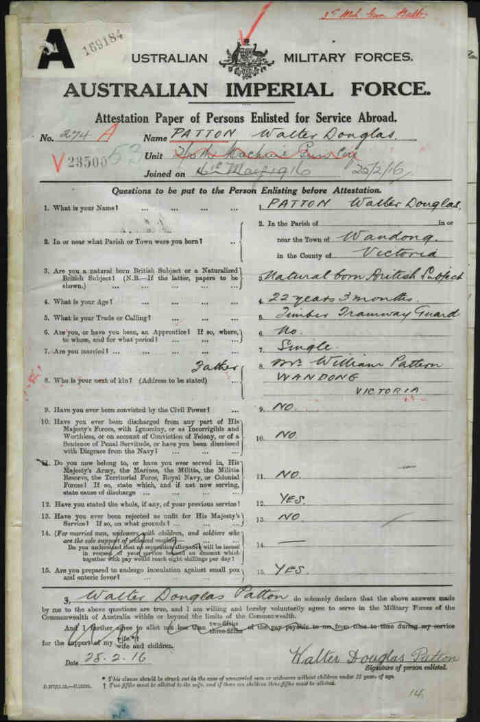 Next of kin Father, Mr R M Patton, Wandong, Victoria