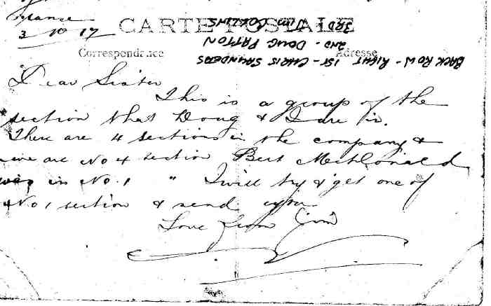 In December 1917 he had leave in England, then continued to serve with his the 6th Field Company Engineers until 25 June 1918, when he was briefly detached to Divisional Headquarters for guard duty.