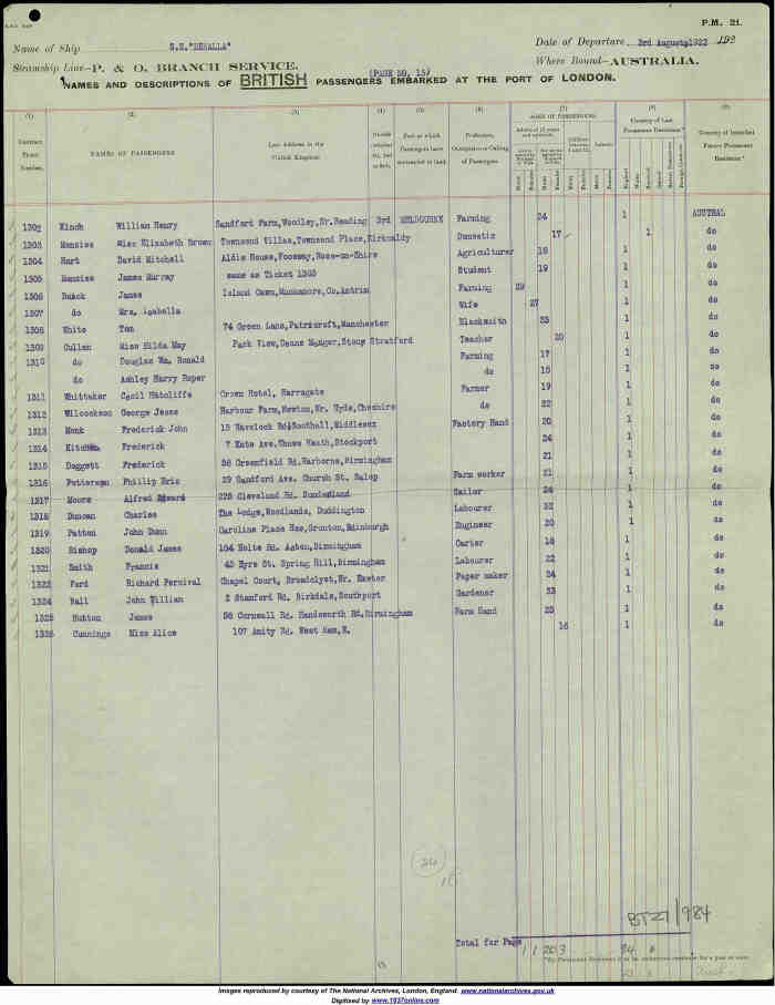 * C.P. said that a story was told in his family of an uncle who ran away to Australia. (This would have been William.)