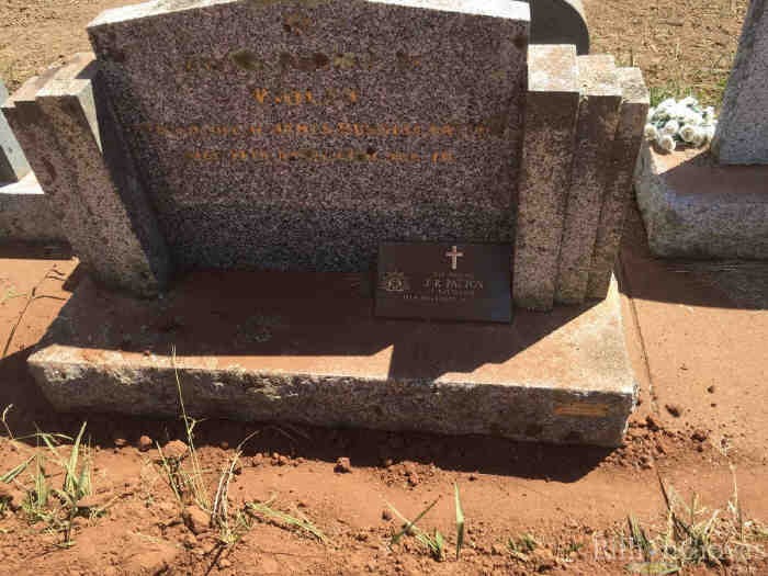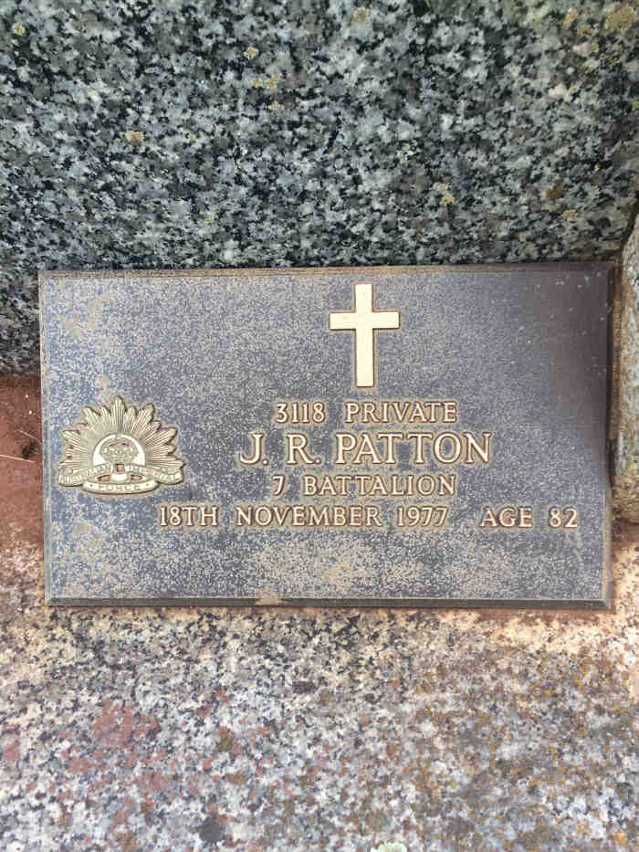 1336. James Russell "Jim" PATTON 358,359,505 (Robert Ninian PATTON1131, William PATTON921, Robert PATTON Esq; Writer to the Signet749, Annie SINCLAIR606, John427, James291, MAGNUS224, Alexander177, JAMES of Newclett and Estaquoy143, Thomas108, Alexander Of Dunbeath And Stemster67, William 2nd Earl Of Caithness45, William 1st Sinclair Earl Of Caithness - 3rd Earl Of Orkney39, Henry 2nd Earl Of Orkney27, Henry Lord Of Roslin, Earl Of Orkney (Prince)21, William Of Roslin18, William Of Roslin (Sir)16, Henry Of Roslin (Sir)15, William (Sir)11, Henri10, Henri9, William8, Henri7, Henri3, William 'The Seemly'2, Walderne1) was born in Nov 1894 in Wallan, Victoria 3756,358,505 died on 18 Nov 1977 in Repatriation General Hospital, Heidleberg, Melbourne, Victoria, Australia358 at age 83, and was buried in Kilmore Public Cemetery, Kilmore, Victoria, Australia. {FGID: 183146948}