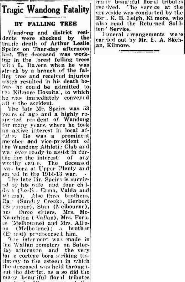 My sister, who is now 85, has two sons and is living in a retirement village in Healesville. My brother died in 1977 left a son and three daughters.