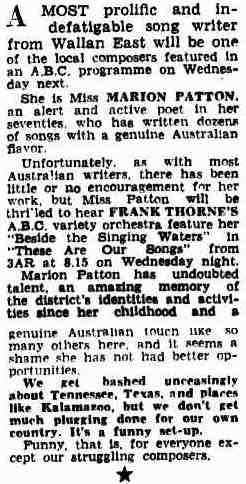I realise that much of what I have written is irrelevant to what you are seeking but you may pick something out that is worth following up and after all it is all history to those coming on. Thankyou for the invitation to call on you. My daughter Jean occasionally visits Canberra, and her husband quite frequently, and she said she would very much like to meet you when she is there.